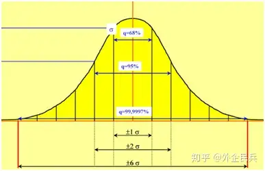 一篇文章带你了解什么是六西格玛关于六西格玛, 相信大部分读者的认知都是复杂、玄幻难以捉摸、被宣称可以实现难以企及目标的专业工具,但是现实中大力推广的企业却不多见。 比如经常被作为反例的摩托罗拉。一句话,是难学难用。 而推广的企业或者机构的讲师,提及项目就聊到DMAIC的流程, 每个阶段又有对应的公式需要了解和掌握。一套流程下来,可能耗时3个月、半年甚至一年以上。与当前微利时代,要求短平快的解决方案相违背。 以上都是对这套方法论的误解,其工具多样但并非难以掌握; 即便是牵涉重大问题或者改善的项目也不必走完DMAIC 的各个步骤。 本篇展开解释其常用术语和工具的定义的应用。 1. 啥是六西格玛?西格玛(σ)是希腊字母,我们读起来比较拗口,那是因为该方法论是美国人提出的,自然有个英文的名字。比如三角形三边长度的勾股定理是国人发明的,“勾股”俩个字估计同样让外国人头疼。 西格玛(σ) 是标准差的意思,而六西格玛 (6σ)也就是6倍标准差。如下图,它实际代表了在+/-6σ的范围内,覆盖了99.9997%的所有可能。也就意味着超出+/-6σ(红线)的范围的机会只有百万分之3。