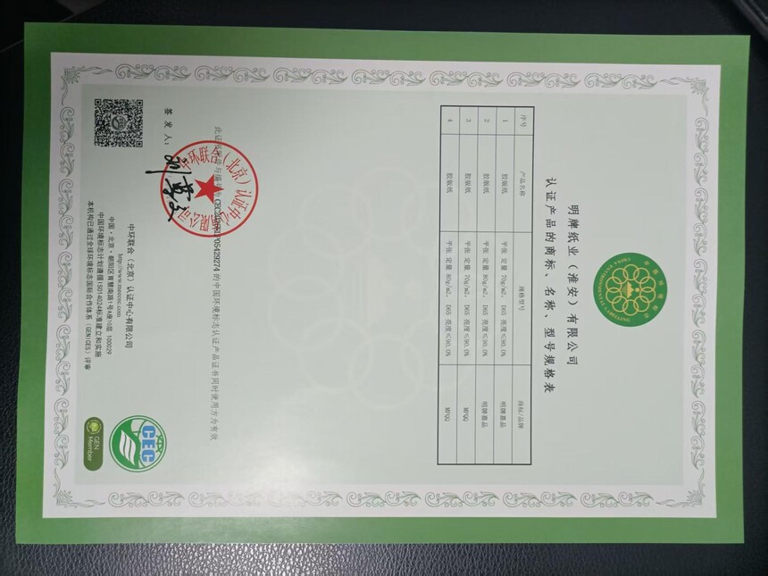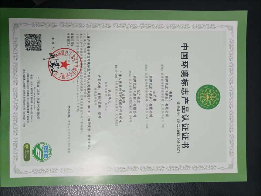 热烈祝贺明牌纸业获得中国环境标志产品认证热烈祝贺明牌纸业(淮安)有限公司获得中国环境标志产品认证证书!在安徽省小中企业服务中心和中环联合(北京)认证中心有限公司的共同努力下,在被认证企业的配合下,于2025年12月31日,该企业成功获证。