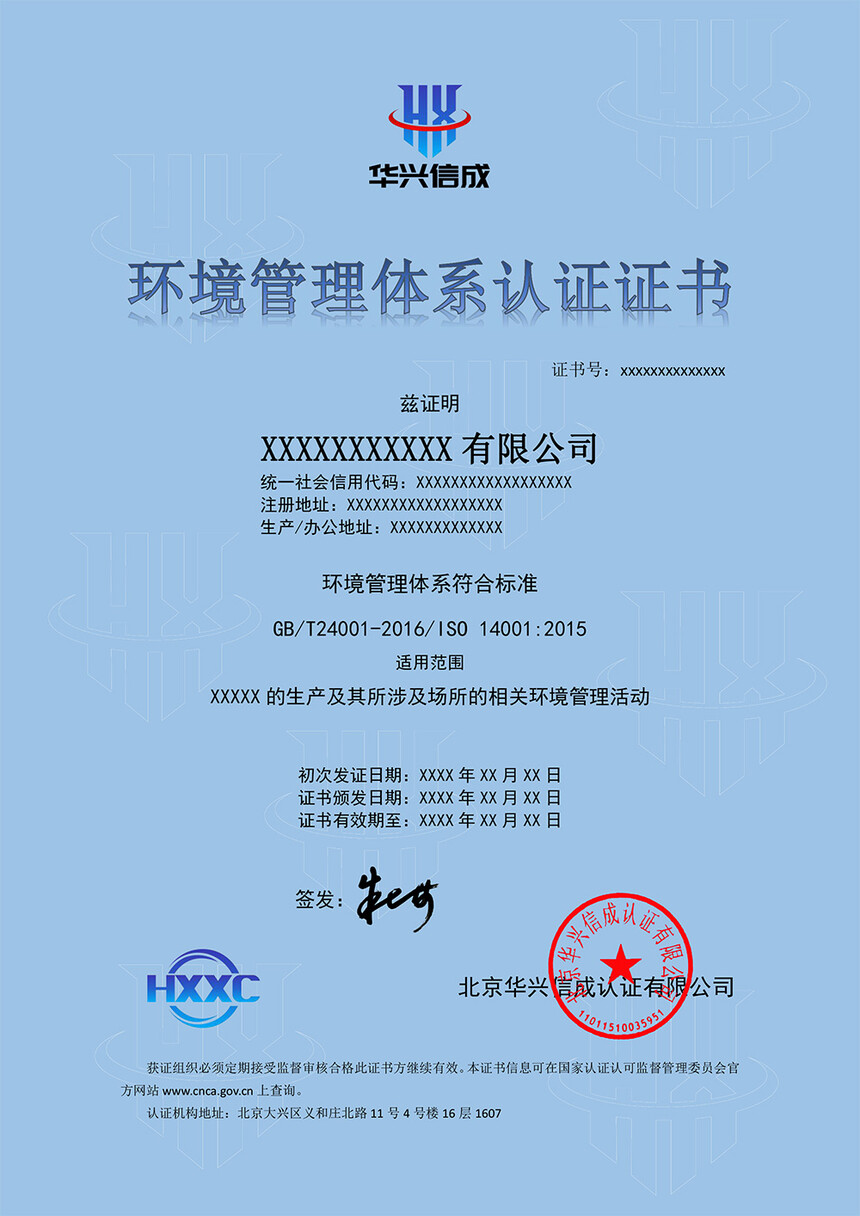 华兴信成认证有限公司安徽分公司具有国家认证认可监督监督颁发的认证机构批准证书(批准号:CNC-R-2022-990),主要为客户提供质量管理体系认证、环境管理体系认证、职业健康安全管理体系认证等管理体系认证。 ISO14001环境管理体系认证 ISO14001认证适用于任何组织,包括企业,事业及相关单位,通过认证后可证明该组织在环境管理方面达到了国际水平,能够确保对企业各过程、产品及活动中的各类污染物控制达到相关要求,有助于企业树立良好的社会形象。 环境管理体系运行模式环境管理体系围绕环境方针的要求展开环境管理、管理的内容包括制定环境方针、实施并实现环境方针所要求的相关内容、对环境方针的实施情况与实现程度进行评审、并予以保持等。环境管理所涉及的管理要素包括组织结构、计划活动、职责、惯例、程序、过程和资源等,这些管理要素与企业生产管理、人事管理、财务管理是类似,没有本质区别,ISO 14001标准将它们系统化、结构化,提出环境管理模式。 1、强化品质管理,提高企业效益。 2、增强客户信心,扩大市场份额,在产品品质竞争中永远立于不败之地。 3、提高全员质量意识,改善企业文化。 4、第三方认证,提供最广泛的认可,节省了第二方审核的精力和费用。 5、有效地避免产品责任。 6、获得了国际贸易"通行证",消除了国际贸易壁垒。 7、法律责任减免:如更容易的许可,更少的检查以及简化的报告要求等。 8、公众形象及社会关系,为消费者选择提供信心。